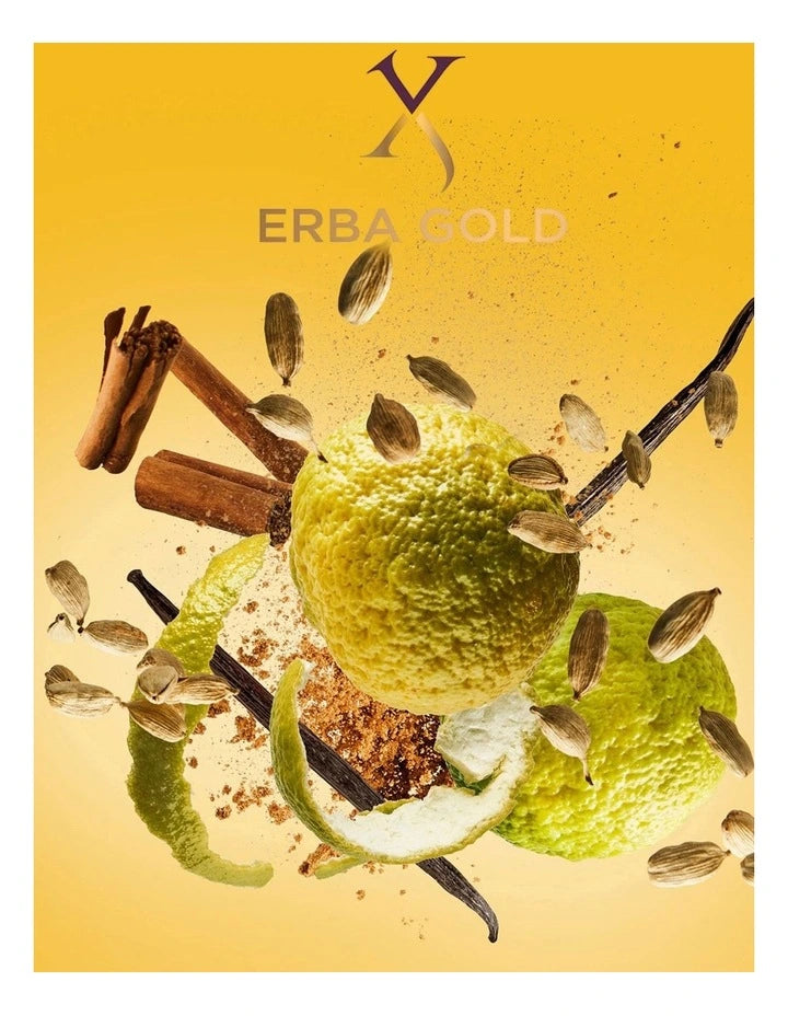 Erba Gold is a radiant, uplifting and modern citrus aromatic fragrance with a refined Mediterranean character. Opening with vibrant notes of lemon, Brazilian orange and ginger, it immediately feels sparkling and energetic. The heart brings a soft blend of fresh spices and florals, while the base settles into smooth amber, musk and vanilla, giving the fragrance warmth and depth without losing its freshness. Erba Gold is bright, luxurious and effortlessly wearable.